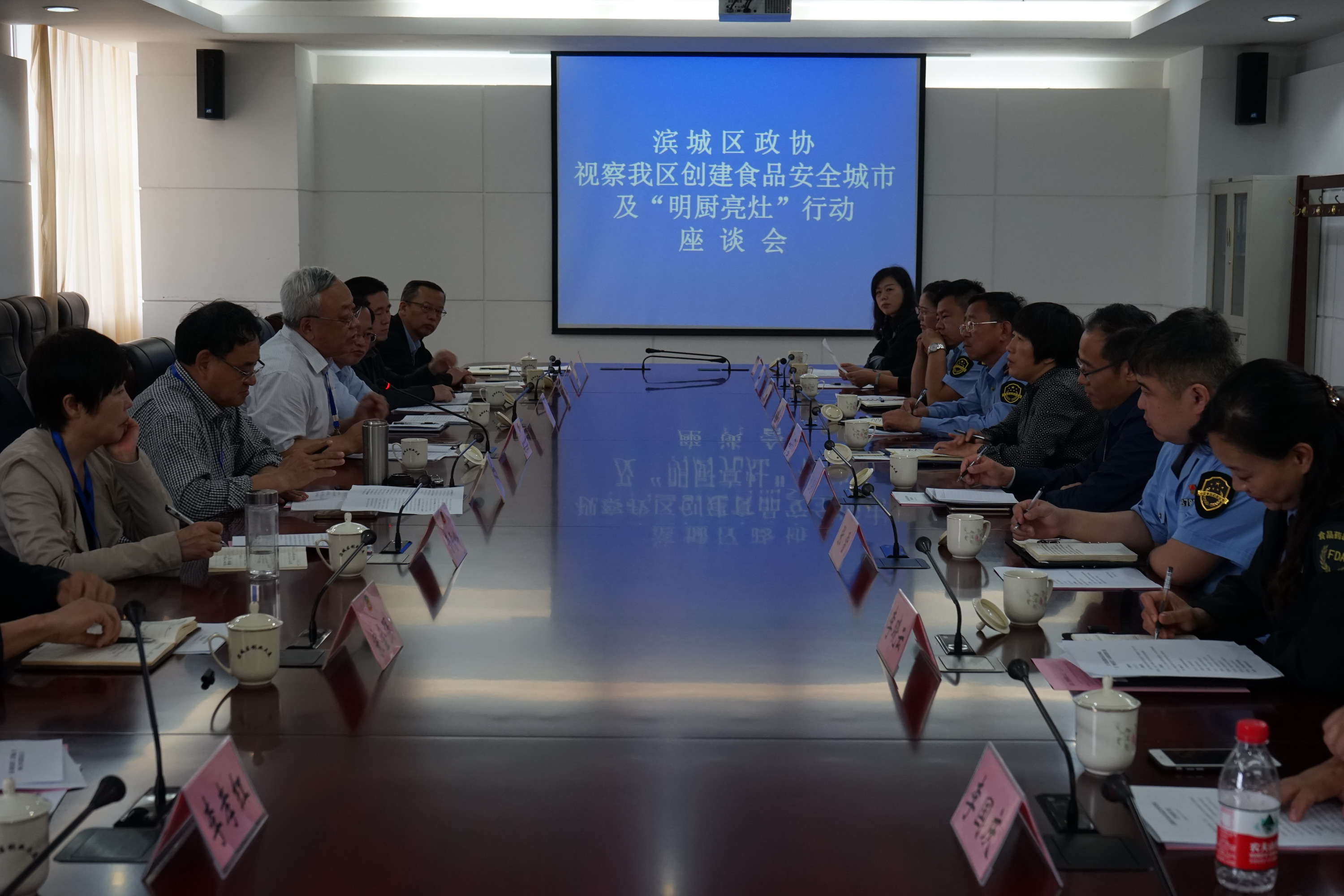 视察组一行实地视察了区第四中学学生餐厅、全福元超市、喜家德全福元店、双量虾水饺馆以及区食药局电子监管平台,观看了区食药局的专题汇报片。座谈会上委员们一致认为,区食药局做了大量工作,取得了明显成效,并已成功创建了省级食品安全城市,正积极创建国家级食品安全城市。关于下一步的工作,委员们建议要进一步提高对食品安全城市创建及“明厨亮灶”工程开展重要性的认识、进一步加强宣传引导、进一步落实好责任,将工作推向深入、取得实效。