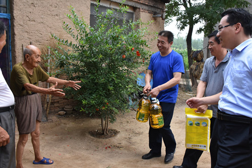 7月6日,正值“七一”建党节期间,阳信县政协党组到该县政协主席所包村和“第一书记”所在村——金阳办前陈村78岁的程丰田和84岁的陈佃荣两名老党员家中,走访慰问困难党员,为他们带去党的问候和温暖,并送去食用油,大米等生活用品。